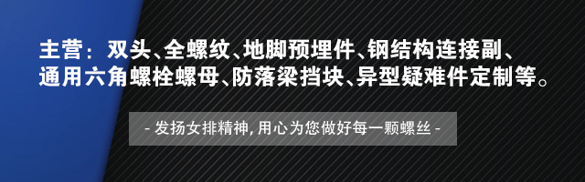 主營高強度產(chǎn)品達(dá)千余種,雙頭、全螺紋、地腳預(yù)埋件、鋼結(jié)構(gòu)連接副、通用六角螺栓螺母、防落梁擋塊、異型疑難件定制等。
