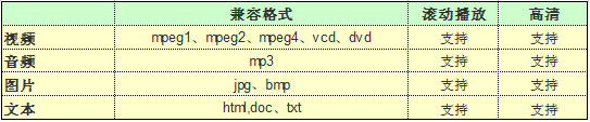 可最高支持20M碼流的MPEG2或者最高16M MPEG4、WMV9、H.264碼流播放。